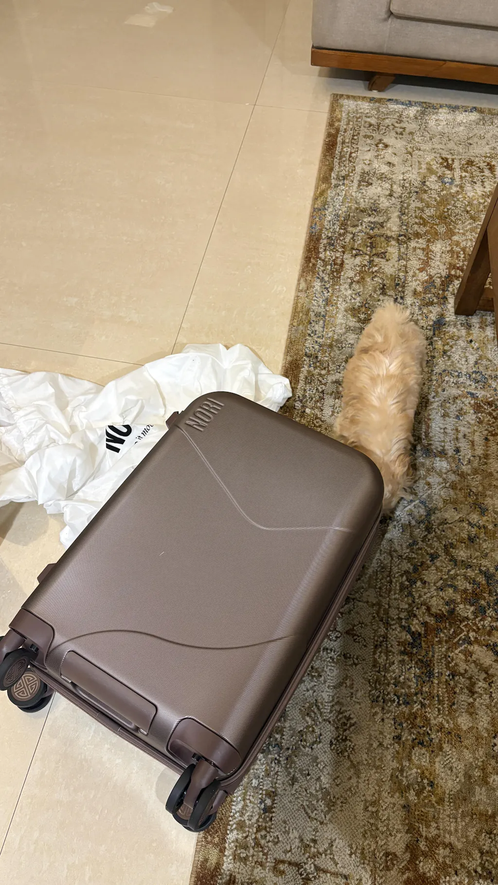 My suitcase just got delivered and I am super excited to travel with it! I ordered the butterscotch suitcase.